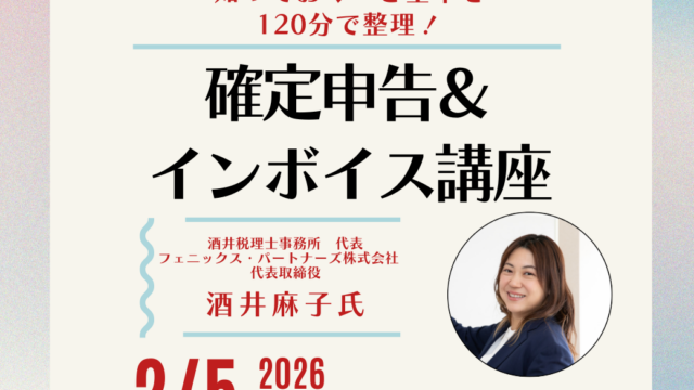 セミナー 確定申告&インボイス講座/町田新産業創業センター 2025-12-30 itou-kaikei12.com https://itou-kaikei12.com/wp-content/uploads/2024/10/logo_ab.png イトウ会計事務所 創業を予定している方に向けて様々な支援を行っている町田新産業創造センターでは、2026年1月のファンマーケティングセミナーに続き、2月にも無 …